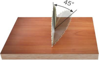 Станок позволяет раскраивать детали под углом, используя поперечный поворотный упор. Поперечный упор данного станка может быть настроен в диапазоне от 90 до 45 градусов по отношению к пиле.