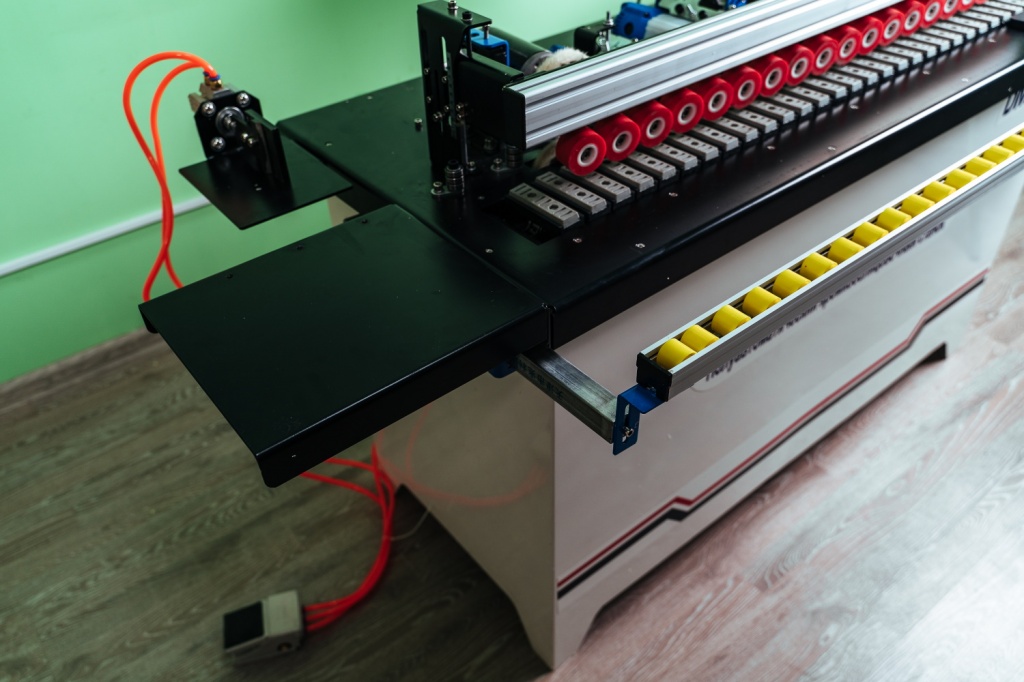 Клеевые валы позволяют наносить клей как на заготовку, так и на кромку для лучшего качества склеивания.