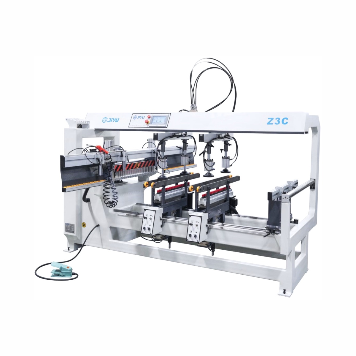 Позиционирование в размер осуществляется по линейке. Фиксация сверлильной группы на заданном размере осуществляется с помощью пневматики.