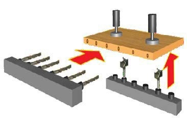 Высокоточные сверлильно-присадочные станки предназначены для сверления сквозных и глухих отверстий в торцах и плоскостях мебельных щитов и брусковых деталей.